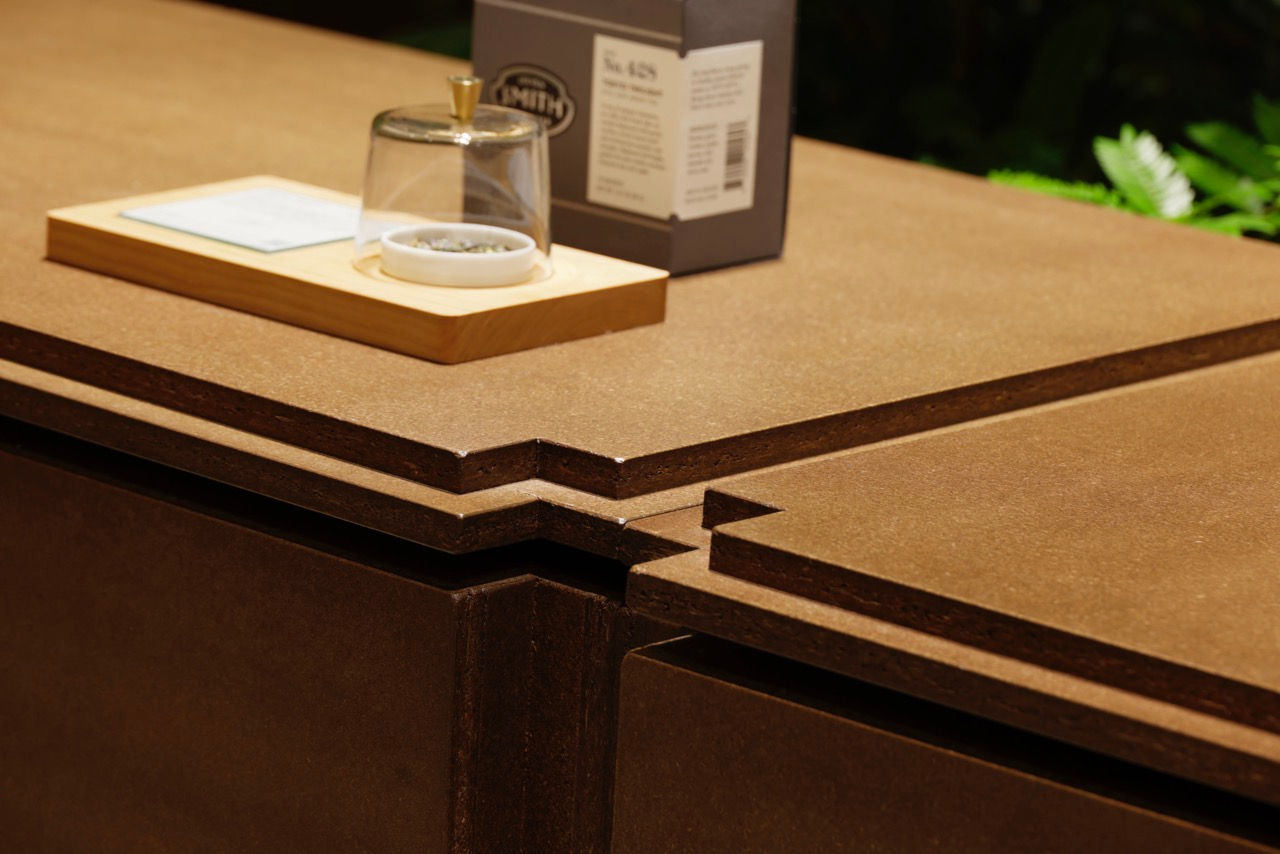 グローバル1店舗目のシンボルプロダクトシリー“TEACRAFT”は、ブランドのクリエイティビティ、クラフトの精神を体現。フルリーフティーならではの茶葉の広がりや世界中の茶葉をブレンドしてできる豊富なティーカラーからインスピレーションを受け、クラフトの技法を通してデザイン制作しました。
